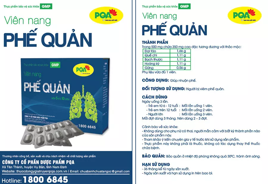PQA phế quản viên nang (50v) dùng cho người bị viêm phế quản.