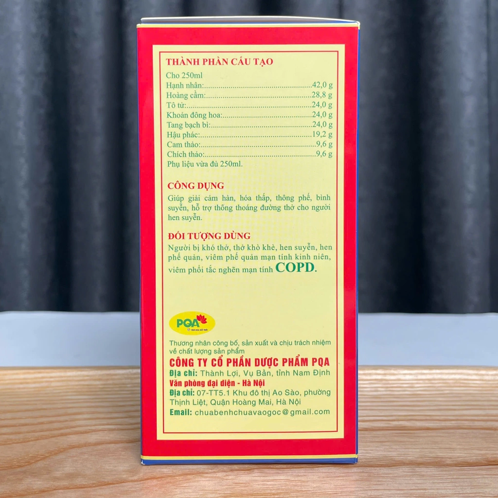 Thành phần Siro PQA Hen Suyễn